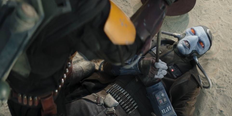 Para empezar, ¿puede Cad Bane no estar muerto? Boba Fett le clavó el palo Ghaffi de los moradores de las arenas en el pecho. Sin embargo, esa lanza no es un arma muy poderosa, y el apuñalamiento no es exactamente en el corazón, sino que puede ser simplemente una perforación en el estómago, por no hablar de que en Star Wars una persona sobrevivió a ser cortada por la mitad, por lo que cualquier excusa servirá. Si me tuviera que decantar por un motivo de su supervivencia, creo que sería algo como los implantes que revivieron a Fennec Shand precisamente en esta serie. Además, minutos después, se muestra el "cadaver" de Cad Bane, tendido, pero soltando un pitido. Podéis comprobarlo en el episodio. Ese pitido pudo haber alertado a alguien para salvarle, o es una armadura de soporte vital. En todo caso, me resultaría raro que Cad Bane estuviera muerto, ya que esos pitidos perderían el sentido.